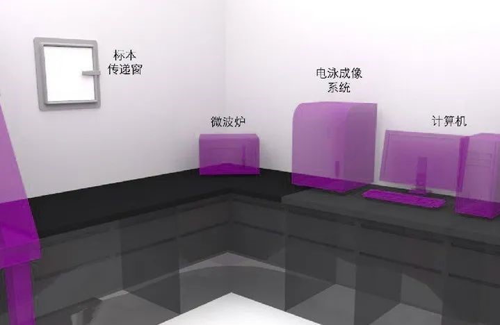 试剂和标本通过机械连锁不锈钢(不建议使用电子连锁方式)传递窗传递,保证试剂和标本在传递过程中不受污染(人物分流)。